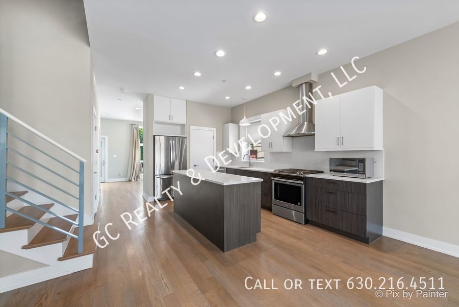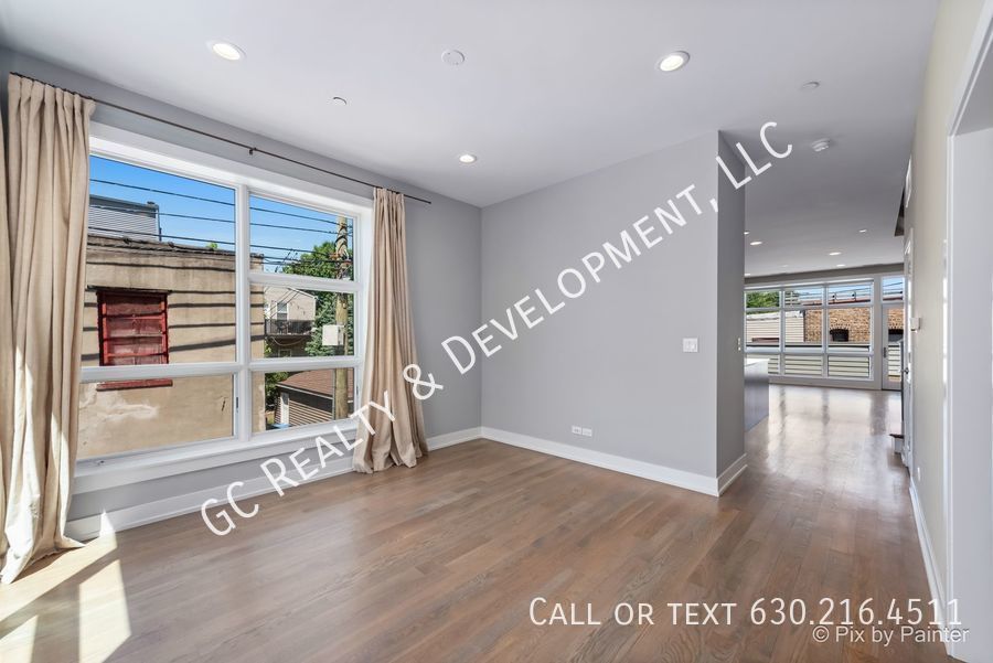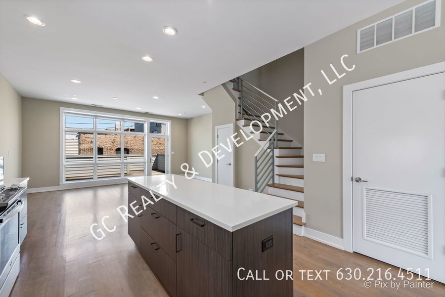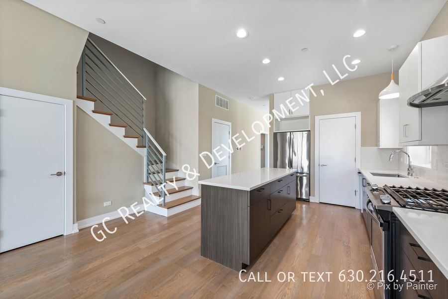 ***WALTON ROW HOME END UNIT / 3 BDRM - 2.5 BTH / HEATED GARAGE SPACE & HUGE PRIVATE DECK*** Welcome to Walton Row! This modern 3-bedroom, 2.5-bath end unit townhome is bathed in natural light. Enter through the welcoming sitting room with floor-to-ceiling windows, leading to the open-concept kitchen featuring quartz countertops, an island, stainless steel appliances, and a walk-in pantry. The bright living/dining area opens to a private deck, perfect for meals and entertaining. A powder room is conveniently located on the main level. Upstairs, the expansive primary bedroom offers space for a king-sized bed, a sitting area, floor-to-ceiling windows, and a generously sized, professionally organized walk-in closet. The ensuite primary bathroom boasts a double sink, large walk-in shower, and ample storage. Two additional bedrooms, a full bathroom, and a laundry closet complete the second floor, providing an optimal layout. Additional features include custom window treatments, abundant storage throughout, and one heated garage parking space. Located steps from beautiful Humboldt Park, the California corridor, CTA buses and Metra trains, and numerous great restaurants! Cats welcomed. Tenant pay for gas and electric. Monthly water charge of $50.00 will apply.