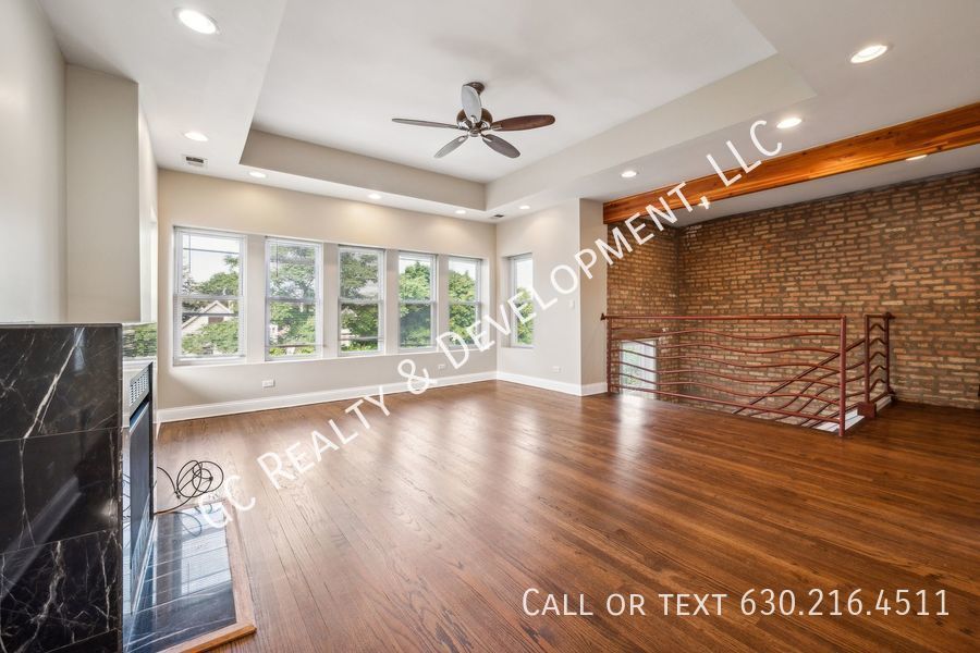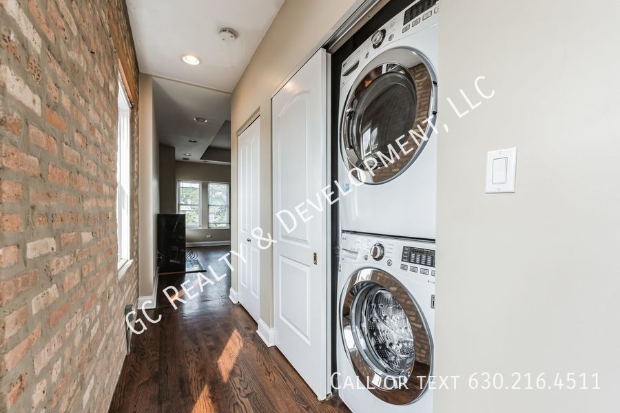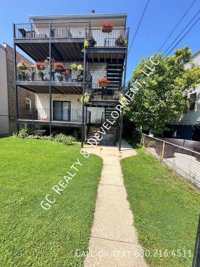 ***VINTAGE PENTHOUSE CONDO / 2BDRM - 2BTH / SS APPL / LAUNDRY IN UNIT / PARKING SPACE INCL*** Stunning Updated Vintage Penthouse Condo! This spacious 1,450 sqft 2-bedroom, 2-bath top-floor unit boasts a split floor plan with large bedrooms, 10' ceilings, and an abundance of natural light. The huge living room features a gas fireplace and a full wall of windows, creating a bright and inviting space. The cook's kitchen is equipped with maple cabinets, granite countertops, and stainless-steel appliances, complemented by a separate dining area that opens to a large private deck through a sliding door. Additional amenities include an in-unit washer/dryer, central air, an exterior parking space, and a separate storage unit. Enjoy the large, fully enclosed common yard in the back. Conveniently located within walking distance to the Blue and Brown Line El and Independence Park. Don't miss out on this unique penthouse living experience! Resident shares responsibility for salting / shoveling and lawn care with other building residents. Please note, all leases will be extended until February 2026, as we do not end leases in October, November, December, or January. WILL NOT PASS CHA INSPECTION.