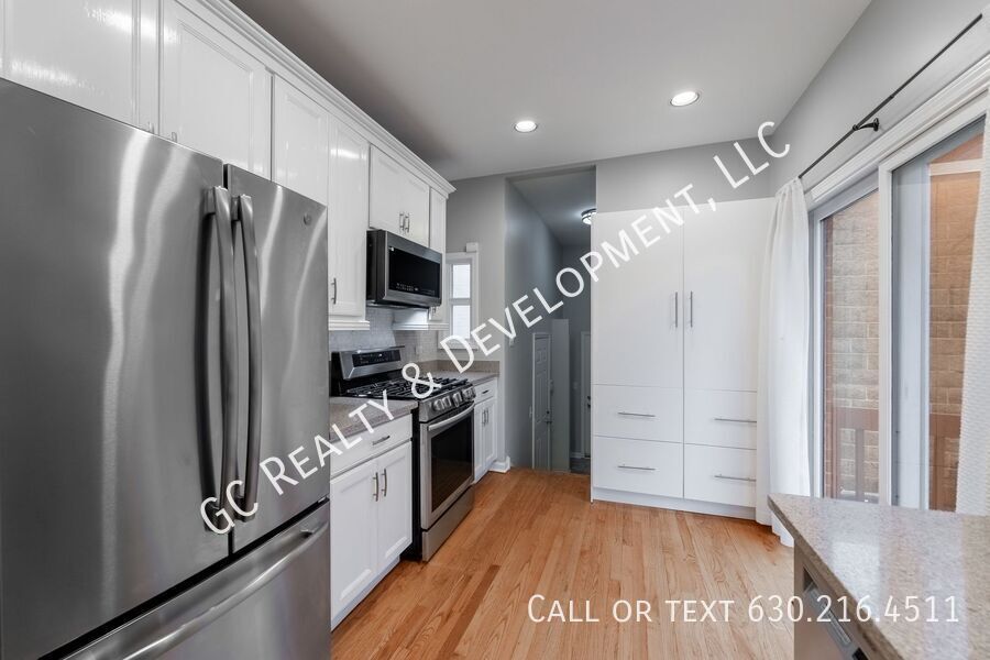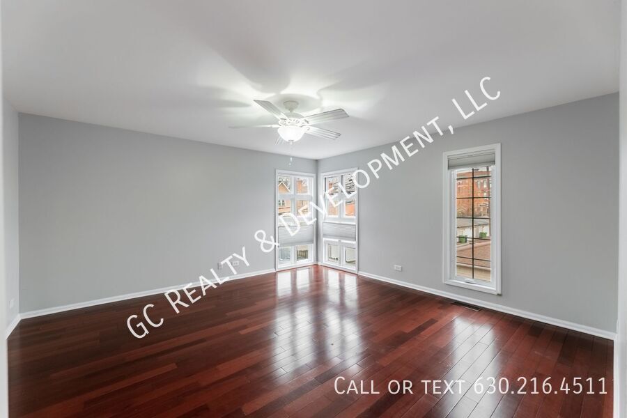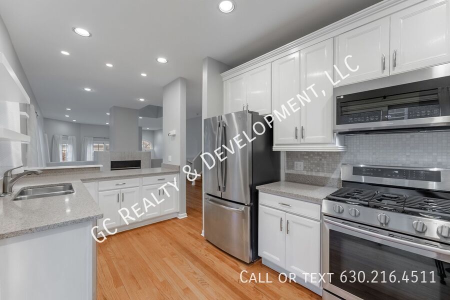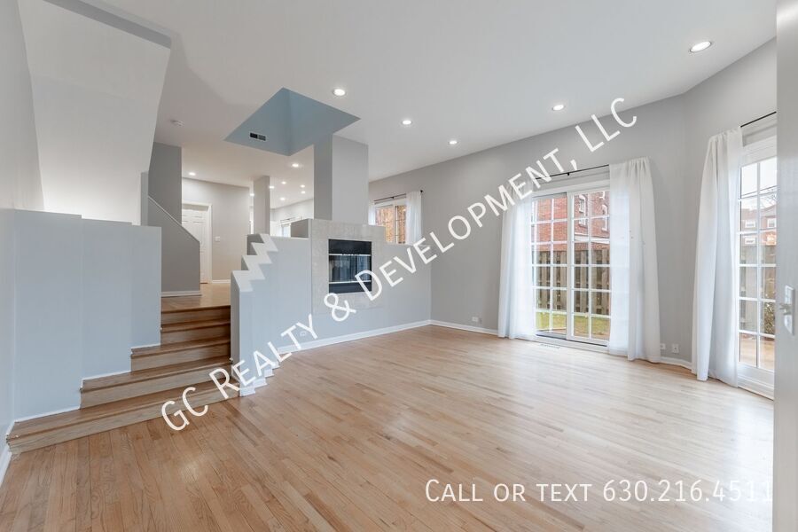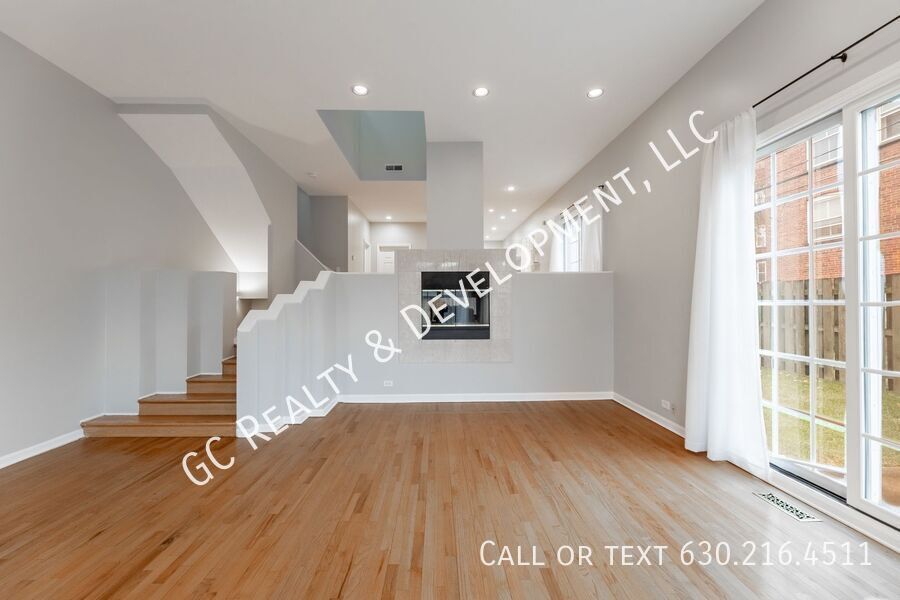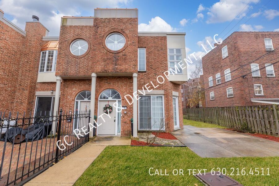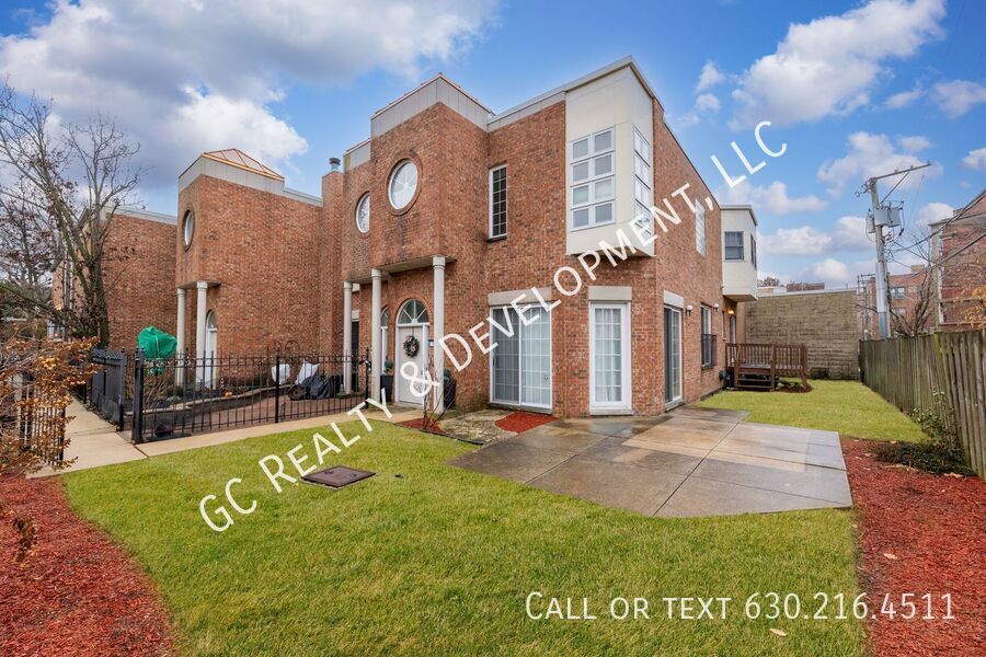 Bright 3-bedroom + den, 3-bath end-unit townhome in Hyde Park with a private fenced yard. Features include high ceilings, a double-sided fireplace, updated kitchen with white cabinets, stone countertops, and SS appliances, plus a pantry. Large primary suite with a walk-in closet and luxury bath with whirlpool tub, shower, and dual vanities. Carpeted lower-level family room, skylights, laundry room with sink, attached garage with storage loft, and two private patios plus a deck. Close to the University of Chicago campus. Tenants are responsible for gas, electric, and water. Pet-friendly.