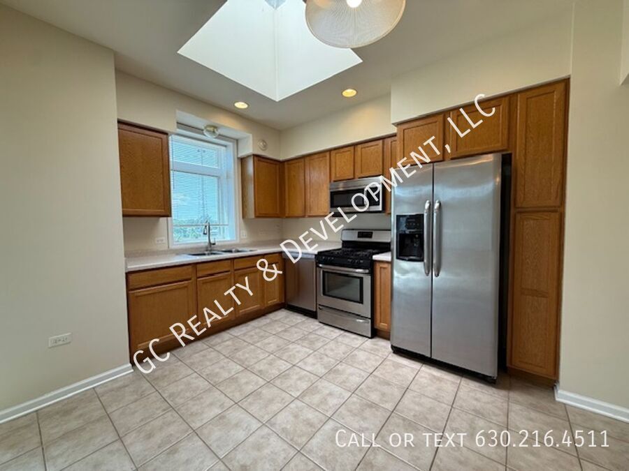 This 2-bedroom, 2-bath unit offers modern living with fresh paint, 9-foot ceilings, and radiant heat included. Enjoy the convenience of a full-size washer and dryer in the unit and an assigned heated garage space. Located in a secure building across from the Metra, this pet-friendly home provides both comfort and accessibility.