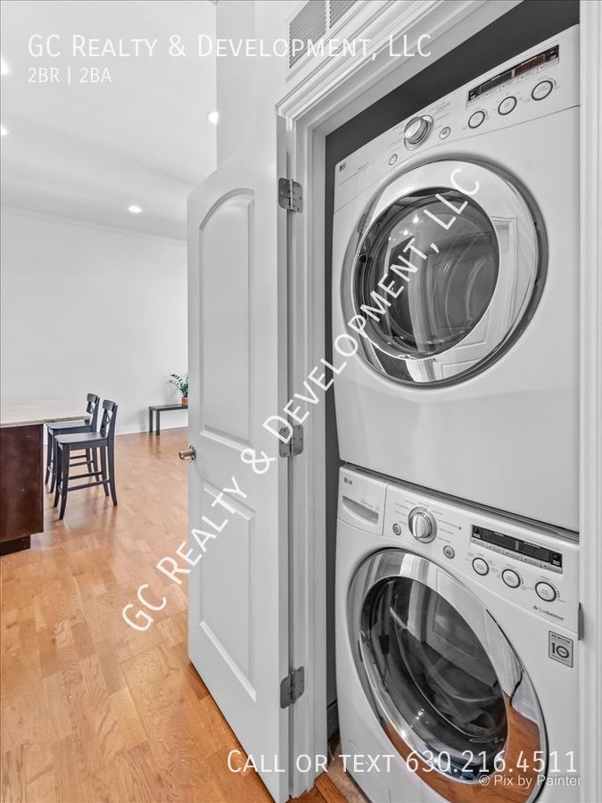 Experience the epitome of low-rise boutique living in the South Loop with this exceptional offering. Boasting 2 spacious bedrooms and 2 bathrooms, this unit is a dream for those seeking both space and style. The chef's kitchen is a masterpiece, featuring stainless steel appliances, granite countertops, and a large island. A generously sized living room flooded with natural light through its wall of windows, along with hardwood floors, white doors/trim, and ceiling fans, create a welcoming ambiance. The convenience of a full-size washer and dryer in the unit, central air, and a balcony make everyday life a pleasure. Your indoor heated garage space is included in the monthly rent, and pet-friendly policies ensure your furry friends are welcome. With newer A/C and a hot water heater, plus an upgraded smart thermostat (Ecobee), your comfort is a top priority. Note that HOA charges a non-refundable move-in fee of $200 and a refundable elevator move-in fee of $200. This prime location is close to the Red Line station, CTA buses, Soldier Field, Lake Michigan, a movie theater, Grant Park, Whole Foods, restaurants, cafes, Trader Joe's, Mariano's, and much more, offering the best of city living right at your doorstep. After the 3 month introductory rate expires, the monthly rental rate will be $2625 per month.