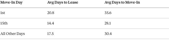 There's also a self-selection factor at play. Tenants who require 1st-of-month move-ins tend to be more rigid in their timelines, they're often syncing with an existing lease or coordinating logistics that don't flex easily. Tenants who can move mid-month are often more motivated, more flexible, and ready to act fast.